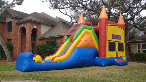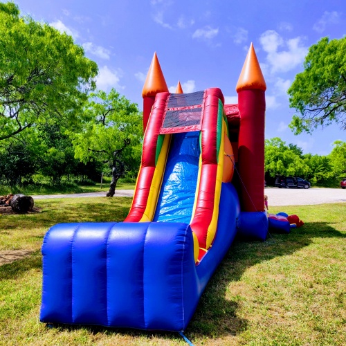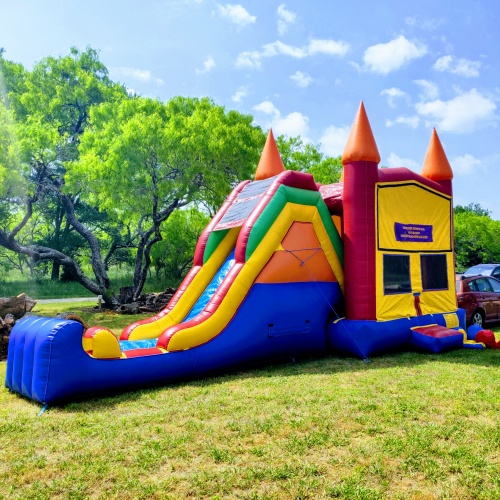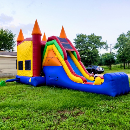 Your child will LOVE our inflatable Jump and Slide 3 In 1 Castle combo bounce house Austin TX Jump and Slide 3 In 1 Castle bounce house! Every single one of your guests will jump and bounce for hours. This beautiful bounce house rental can be one of the high points of your party, being one of the favorites makes this inflatable castle rental one of the most popular Austin TX bounce house rentals.