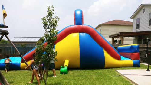 Your child will LOVE our inflatable 32' Backyard Water Slide with Splash Pool in Austin TX! Every single one of your guests will jump and bounce for hours. This beautiful bounce house rental can be one of the high points of your party, being one of the favorites makes this inflatable castle rental one of the most popular Austin TX bounce house rentals.
