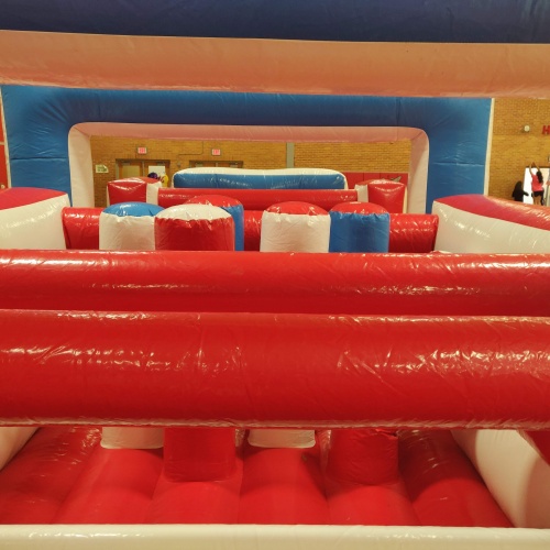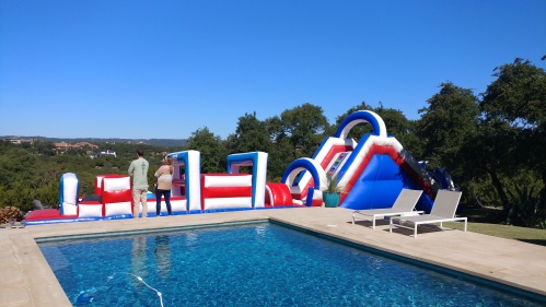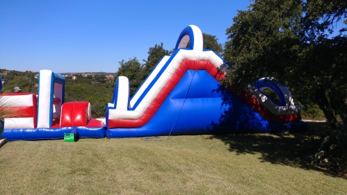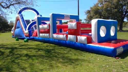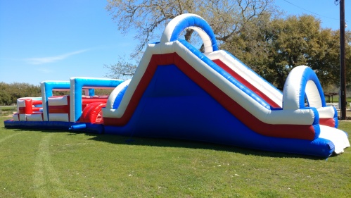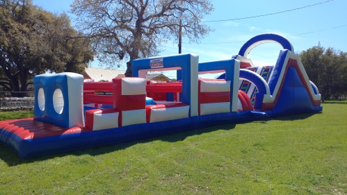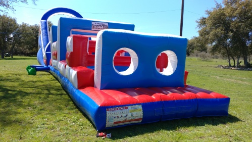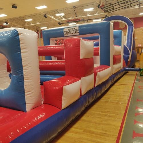 Your child will LOVE our inflatable 70' Obstacle Course Interactive bounce in Austin TX! Every single one of your guests will jump and bounce for hours. This beautiful bounce house rental can be one of the high points of your party, being one of the favorites makes this inflatable castle rental one of the most popular Austin TX bounce house rentals.